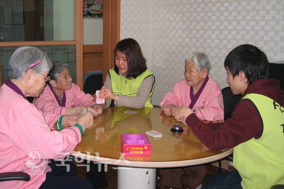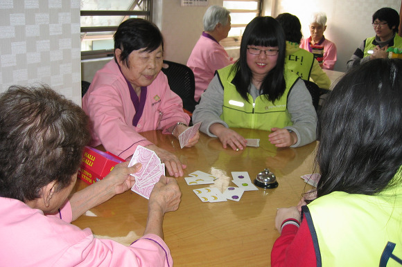 3월중 가장 따뜻했다는 12일 토요일 오전 9시 반. 경기도 안양 호계2동에 자리한 안양시 노인종합복지관 요양원동 앞에 젊은 청년들이 모여있다. 이들은 요양원에 계시는 어르신들과 함께 <보드게임으로 어르신과 친구되기>라는 안양시 자원봉사 센터의 파도타기 프로그램의 진행을 위해 모인 안양시 지구시민 봉사단. 이들은 세계국학원 청년단 단원들이기도 하다.