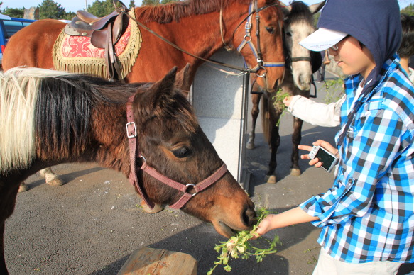 ▶ 말과 교감하며... 먹이를 주며 즐거워하는 아이들.