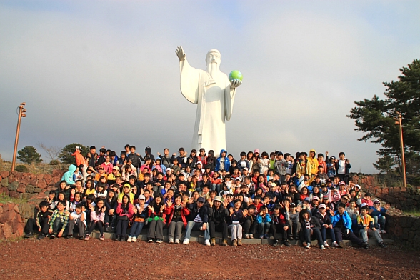 부산시 모산초등학교 수학여행단이 지난 14일 제주역사문화공원을 방문했다. 세계평화의 섬, 제주에 세워진 제주역사문화공원은 한민족의 평화철학인 '홍익인간' 정신과 제주의 '삼무(三無)정신' 등 역사와 문화를 배우고 체험하는 곳이다. 국조 단군왕검상과 17인의 역사속 위인들의 정신, 국궁, 승마 등 다양한 체험활동을 통해 코리안 스피릿('Korean Spirit; 홍익정신)을 체험하는 제주의 새로운 명소로 떠오르고 있다.
