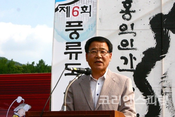 정병수 충남 논산시 양촌면장은 9일 '제6회 풍류도 영가무도 장생축제'에 참석해 "나 뿐만 아니라 모두가 좋은 세상을 만드는 것이 바로 풍류도의 정신"이라며 축사를 전했다.