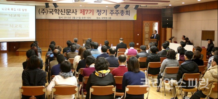 국학신문사(대표 고훈경)는 21일 충남 천안에 있는 국학원에서 '제7기 정기 주주총회'를 개최했다. 이날 행사에는 국학신문사 고훈경 대표이사와 정유철 편집국장을 비롯해 주주 100여 명이 참석했다. 주주총회는 2012년 국학신문사 경과보고, 회계 감사 결과보고 및 재무제표 승인 순으로 진행됐다.