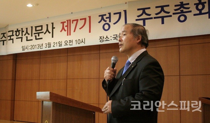 고 대표는 "그런 활동을 할 수 있도록 뒤에서 물심양면으로 지원해준 분들이 바로 여기 계신 주주 여러분이다. 국학신문사가 대한민국의 대표적인 홍익언론으로 성장할 수 있도록 많은 성원 부탁드린다"며 고마운 마음을 전했다.
