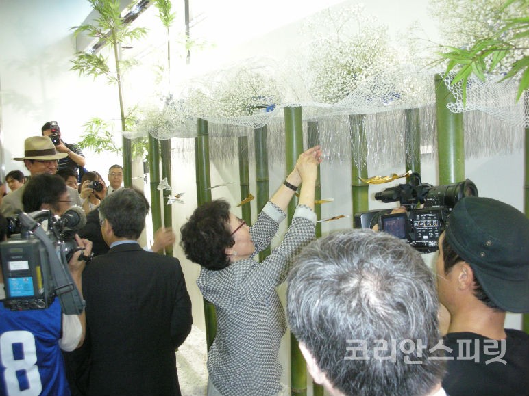 종이접기로 '까치'를 만들어 '오작교'를 장식, 한일을 잇는 미래를 짠다.