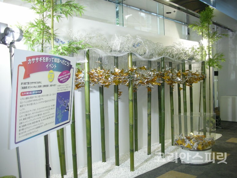 행사 기간 중 많은 일본인들이 까치 접기에 참여했다. 한일 간 우호를 바라는 마음을 담아 오작교에 걸었다.