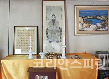 창운각에는 왼쪽부터 관운장과 석가여래좌상, 단군영정이 있었다. 관운장은 환난을 물리치기 위해 모신 것이다. 불상 아래는 남북통일 세계평화라고 적었다. 단군영정은 왼쪽에 천부경이 있고 오른쪽은 백두산 천지 사진이 걸려 있었다. 이 사진은 이규행 국학연구소 이사(1935∼2008)가 기증한 것이다.