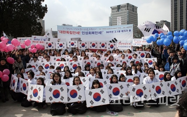 서울 광화문 시민열린마당에서는 서울국학원 주관으로, 96주년을 기념하여 96명 유관순의 3.1만세 퍼포먼스 및 대형 태극(지름 5m) 카드섹션, 그리고 아리랑 태극댄스 등 다채로운 퍼포먼스가 펼쳐졌다. 초중고 학생들이 독도 댄스도 췄다. 또한 500여 명 이상의 시민들도 태극 풍선을 들고 함께 만세에 참여했다.
