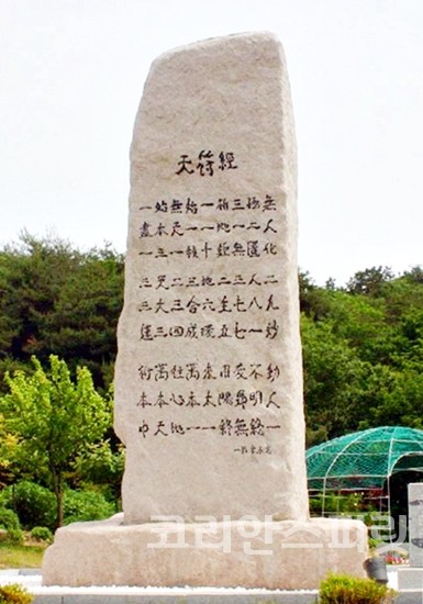 천부경 비가 하루빨리 전국에 세워지고 전 세계인들이 존경하고 좋아할 수 있도록 건립된 곳이 또한 ‘한민족 역사문화 공원’이기도 합니다. 이 비에 새겨진 천부경은 일지 이승헌 총장(글로벌사이버대, 국학원 설립자)의 필체입니다.