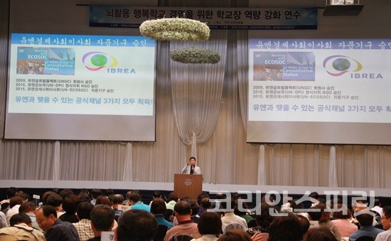국제뇌교육대학원대학교가 28일 대전 선샤인호텔에서 개최한 ‘뇌활용 행복학교’ 경영을 위한 학교장 역량강화연수에서 ‘뇌교육의 세계화’라는 주제를 발표한 장래혁 글로벌사이버대학교 뇌융합학부 교수는 “오늘 연수를 한마디로 정리하면 ‘뇌’라는 키워드이다”며 “‘뇌’라는 내용이 아니었다면 학교장 수백 명이 관심을 보이고 참가하지 않았을 것이다”라고 말문을 열었다.