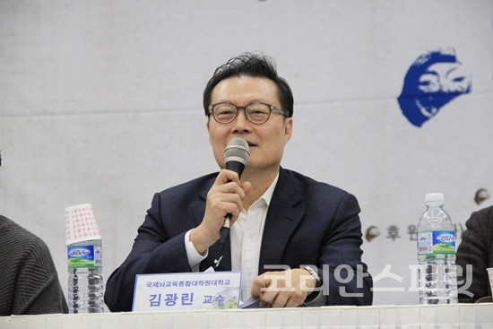 국제뇌교육종합대학원 김광린 교수(지구경영학과)는 ‘화랑도와 지구시민정신’을 주제로 발표했다. 김광린 교수는 “화랑도와 홍익정신은 동전의 앞뒷면과 같고, 화랑도의 원류는 홍익인간정신”임을 강조했다.