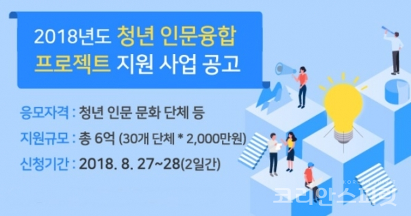 ![2018 청년 인문융합 프로젝트 '사고뭉치! 청년 인문상상'사업에 참여할 청년 인문문화단체는 미취업 청년 인문전공자를 발굴해 8월 27일~28일까지 신청하면 된다. [사진=한국출판문화산업진흥원 홈페이지]](https://cdn.ikoreanspirit.com/news/photo/201808/52189_62386_339.jpg)