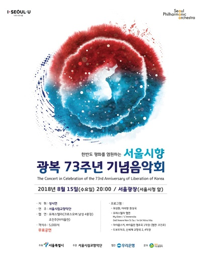 서울시와 서울시립교향악단이 광복 73주년을 맞아 15일(수) 오후 8시 서울광장 특설무대에서 ‘한반도 평화를 염원하는 서울시향 광복 73주년 기념음악회’를 개최한다.