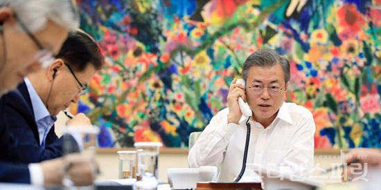 ![문재인 대통령은 9월 4일 밤 9시부터 50분 동안 도널드 트럼프 미국 대통령과 전화통화를 하며 대북 특사 파견 등을 논의했다. [사진출처=청와대 페이스북]](https://cdn.ikoreanspirit.com/news/photo/201809/52491_62952_5137.jpg)