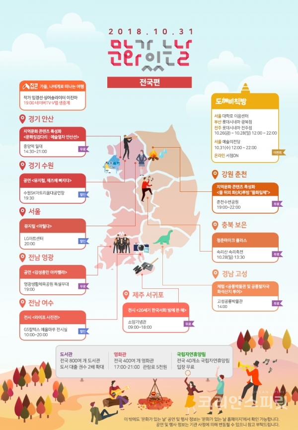 ![독서의 계절 10월에 맞는 '문화가 있는 날' (10월 31일)을 전후로 전국에서 2,287개의 문화행사가 국민을 찾는다. [사진=문화체육관광부]](https://cdn.ikoreanspirit.com/news/photo/201810/52969_63970_1439.png)