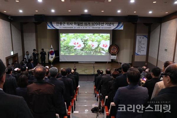 ![10월 26일 오전 서울 중구 안중근의사기념관 강당에서 '안중근 의사 의거 109주년 기념식'이 열렸다. [사진=문현진 기자]](https://cdn.ikoreanspirit.com/news/photo/201810/52985_64001_2232.jpg)