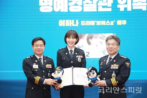 ![드라마 '보이스2'에서 여주인공 역을 맡은 배우 이하나가 '창설 61주년 112의 날 행사'에서 명예경찰관(순경)으로 위촉되었다. [사진=경찰청]](https://cdn.ikoreanspirit.com/news/photo/201811/53040_64108_87.jpg)