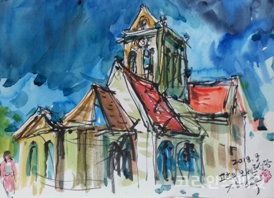 ![오베르성당. 수채화. 장영주 작. [사진=장영주]](https://cdn.ikoreanspirit.com/news/photo/201811/53358_64714_1515.jpg)