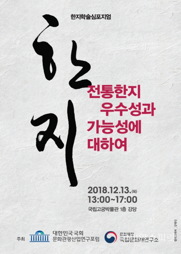 !['전통한지의 우수성과 가능성'을 주제로 하는 한지학술심포지엄이 오는 13일, 국립고궁박물관에서 개최된다. [사진=문화재청]](https://cdn.ikoreanspirit.com/news/photo/201812/53475_64946_54.jpg)