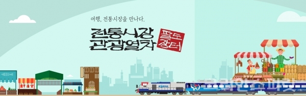 ‘팔도장터 관광열차’는 중소벤처기업부와 코레일이 공동으로 매년 지역 대표시장 20여 곳을 선정하여 정기 운행하는 전용열차다. 열차 이용객에게 요금 할인(1인당 1만 5천원)과 온누리상품권(1인당 5천원)을 지급함은 물론, 기차역~전통시장까지 무료버스를 연계하여 주변 관광지도 둘러볼 수 있도록 설계한 전통시장 맞춤형 관광상품이다.