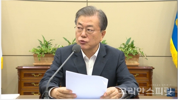 ![문재인 대통령이 7월 8일 수석·보좌관 회의 모두발언을 통해 일본에 무역 제한 조치 철회와 양국 간의 성의 있는 협의를 촉구했다. [사진=청와대 유튜브 화면 갈무리]](https://cdn.ikoreanspirit.com/news/photo/201907/55605_69025_318.png)