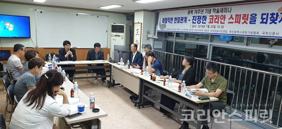 ![부산국학원은 25일 오후 7시 양정청소년수련관 4층 강당에서 “바람직한 한일관계 - 진정한 코리안 스피릿을 되찾자” 을 주제로 학술세미나를 개최하였다. [사진=부산국학원]](https://cdn.ikoreanspirit.com/news/photo/201907/55847_69477_5230.jpg)