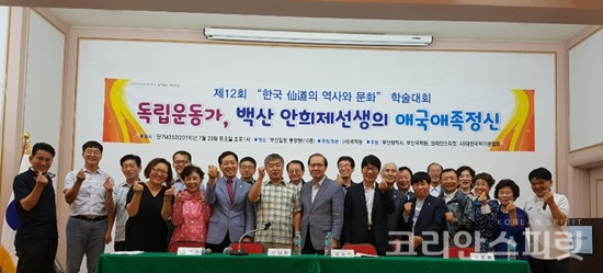 ![부산국학원이 20일 부산일보 10층 소강당에서 “독립운동가 백산 안희제선생의 애국애족정신-독립운동의 산신 부산 백산상회”를 주제로 개최한 제12회 한국선도의 역사와 문화 학술대회 발제와 토론 참가자들이 기념촬영을 했다. [사진=부산국학원]](https://cdn.ikoreanspirit.com/news/photo/201907/55854_69487_4757.jpg)