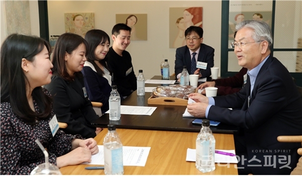 ![김용삼 문화체육관광부 제1차관(오른쪽)이 지난 29일, 서울 대학로에 위치한 ‘그림가게, 미나리하우스’에서 청년 예술인들과 함께 간담회를 진행하며 소통하는 시간을 가졌다. [사진=문화체육관광부]](https://cdn.ikoreanspirit.com/news/photo/201910/56857_71328_740.png)