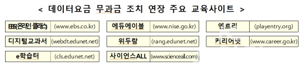교육부(부총리 겸 장관 유은혜)와 과학기술정보통신부(장관 최기영)는 이동통신 3사와 협력해 EBS 등 주요 교육사이트에 대한 데이터요금 무과금(제로에이팅)을 6월말까지 한달 더 연장한다.