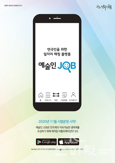 2020 연극의 해 집행위원회는 ‘전국 연극인 인적 네트워크 서비스-연극인 일자리 매칭 앱’ 사업의 하나로 연극인 일자리 매칭 앱 예술인JOB을 개발, 공개했다.