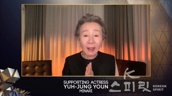 ![배우 윤여정은 미국 배우 조합상(SAG)에 이어 영국 아카데미에서 한국 최초로 여우조연상 트로피를 거머쥐며 오스카 수상 가능성을 높였다. [사진출처= 영국 아카데미 시상식 공식 트위터 / BBC ONE LIVE/제공=판씨네마(주)]](https://cdn.ikoreanspirit.com/news/photo/202104/62907_82829_1827.jpg)