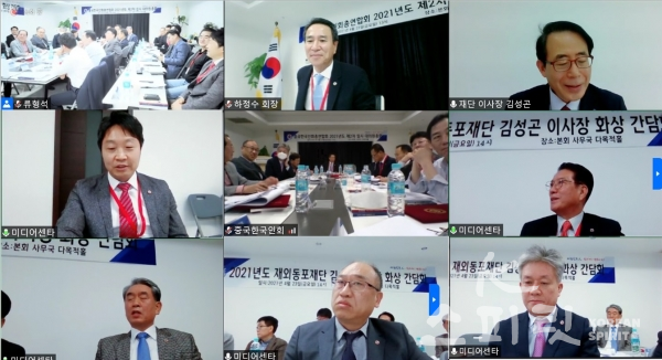 재외동포재단(이사장 김성곤)은 중국과 캐나다 한인회장들과 각각 비대면 화상담회인 ‘찾동(찾아가는 동포재단)’을 개최하여 동포사회 주요 현안을 협의하고 애로사항을 청취했다.