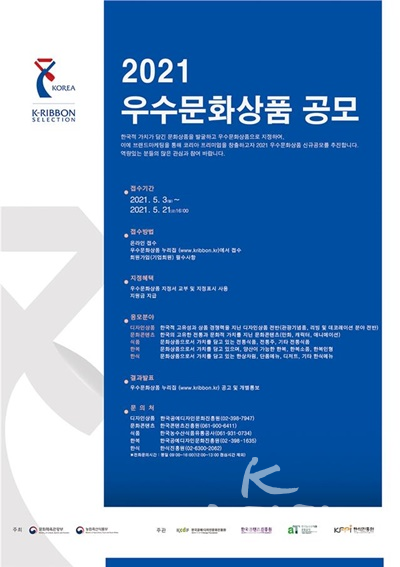 이번 공모는 한국공예·디자인문화진흥원에서 총괄 진행하며, 우수문화상품 케이리본 누리집(kribbon.kr) 에서 접수한다.