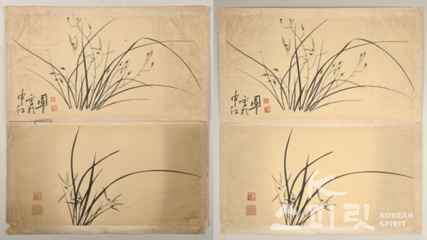 ![민역익 필 《운미난첩芸楣蘭帖》 1,2면의 보존처리 전(왼쪽)과 보존처리 후 모습. [사진=문화재청]](https://cdn.ikoreanspirit.com/news/photo/202105/63383_83774_522.jpg)