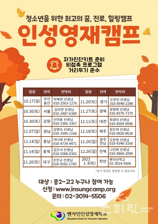 ![벤자민인성영재학교는 오는 10월 17일 부산을 시작으로 전국 14개 시도 학습관별로 인성영재캠프를 개최한다. [사진=벤자민인성영재학교]](https://cdn.ikoreanspirit.com/news/photo/202110/65295_87432_4913.jpg)