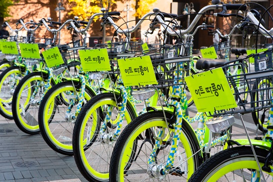 ![기존의 서울시 공유 자전거의 디자인을 새롭게 바꾼 '아트 따릉이'를 타고 있는 모습. [사진=서울문화재단]](https://cdn.ikoreanspirit.com/news/photo/202111/65678_88261_1426.jpg)