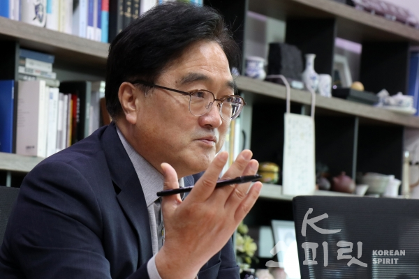 순국선열의 날을 맞아 11월 15일, 김한 독립운동가의 외손이며 홍범도 기념사업회 이사장인 우원식 더불어민주당 의원을 서울 여의도 그의 의원실에서 만났다. 이재명 대선 후보의 공동선대위원장이었다가 선대위 쇄신을 호소하며 현장을 선택한 그는 "대한민국 대통령에게 가장 필요한 자질은 나라의 정체성을 바로 세우는 것"이라고 한다.