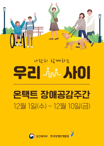 ![보건복지부와 한국장애인개발원은 장애인과 비장애인이 상호 존중하는 사회 분위기를 조성 확산하기 위해 '2021 장애공감주간'을 12월 1일부터 10일까지 열흘간 진행한다. [포스터=보건복지부]](https://cdn.ikoreanspirit.com/news/photo/202112/65840_88553_4211.png)