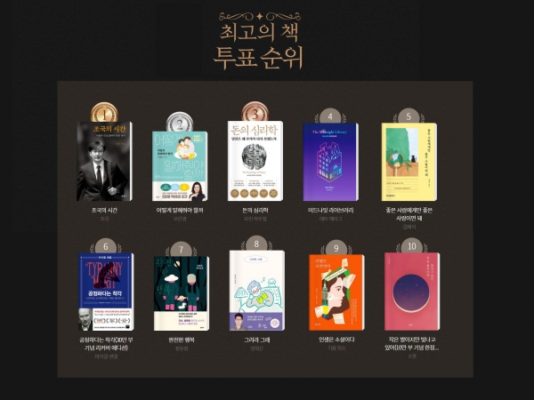 이 중 《조국의 시간》은 최다 득표인 총 16,113표를 얻었다. 올해 5월 출간된 《조국의 시간》은 2019년 8월 9일, 저자가 법무부장관 후보로 지명된 이후 벌어진 일련의 사건을 정리한 회고록으로 진보적 지식인으로서 꿈꿔왔던 검찰개혁을 공직자로서 실현하는 과정에서 겪은 고난의 시간을 가감 없이 담아냈다.