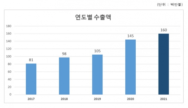 우리나라 김치 수출이 2021년 역대 최고 실적을 기록했다 .