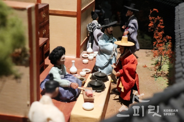 육조거리 관원들의 퇴근 후 풍경. 신윤복의 18세기 작품 '주사거배酒肆擧盃'를 바탕으로 재구성한 모형이다 [사진=김경아 기자]