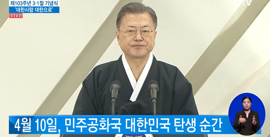 ![문재인 대통령이 3월 1일 제103주년 3.1절 기념식에서 기념사를 하고 있다. [사진=KTV 갈무리]](https://cdn.ikoreanspirit.com/news/photo/202203/66795_90279_285.png)