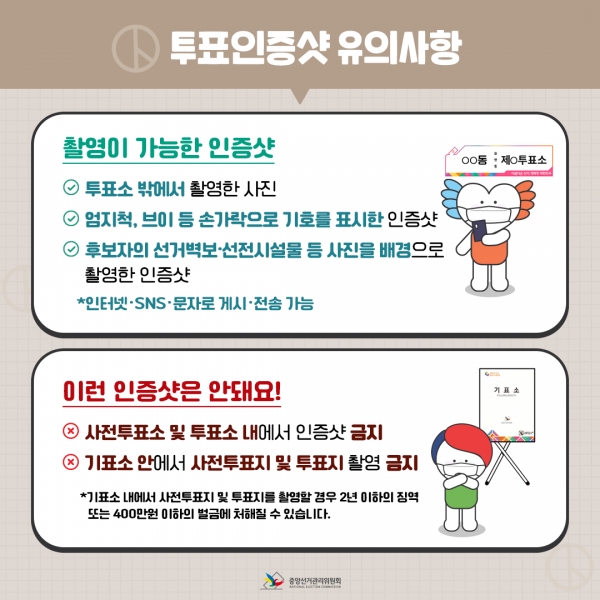 투표 인증샷, 기표된 투표지 촬영 등 가능한 것과 불가능한 행위를 따져 가능한 것만 해야 한다.