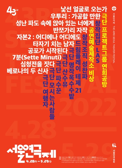 ![제43회 서울연극제가 오는 4월 28일(목)부터 5월 29일(일)까지 32일간 대학로 인근 주요 공연장에서 개최된다. [포스터=서울연극협회 제공]](https://cdn.ikoreanspirit.com/news/photo/202204/67282_91153_3958.jpg)