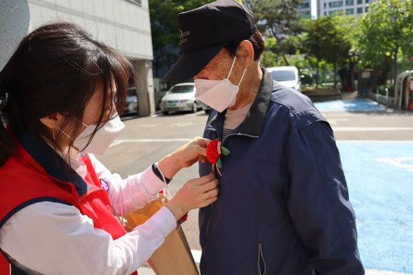 선물을 받은 어르신은 “5월이면 유독 외롭고 쓸쓸한데 이렇게 선물도 전해주고 카네이션을 달아주니 기분좋다”며 “늘 잊지 않고 챙겨줘서 고맙다”고 감사인사를 전했다.
