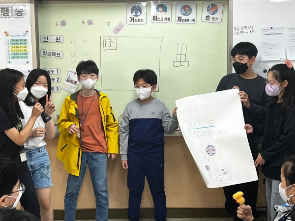 ![5월 4일 양천구 목운초등학교에서 ‘민주주의와 선거’를 주제로 한 교육에서 학생들이 조별로 학교에 제안하고 싶은 것을 발표하고 있다. [사진 제공 한국청소년재단]](https://cdn.ikoreanspirit.com/news/photo/202206/67869_92407_518.jpg)