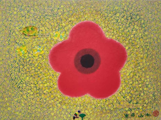 김병종 화가는 1989년부터 ‘생명의 노래’ 시리즈를 그려왔다. ‘생명의 노래’ 연작 중 대표 작품인 ‘화홍산수’는 생명이 만개하는 순간, 분출하는 생명을 상징하고 있다. 출품된 6점의 붉은 꽃은 생명의 눈동자로 강인한 생명력을 표현한다.