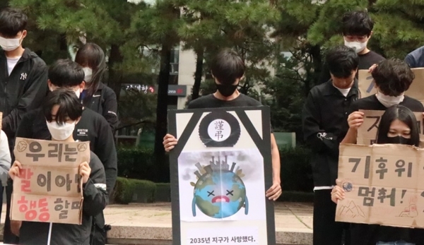 ![청년NGO 미래경영청년네트워크는 23일 오전 11시부터 오후 2시까지 서울 광화문 서울파이낸스센터 앞에서 글로벌 기후파업 시위를 했다. 지구 장례식 퍼포먼스로 기후위기의 심각성을 알렸다. [사진 강나리 기자]](https://cdn.ikoreanspirit.com/news/photo/202209/68708_94575_49.jpg)