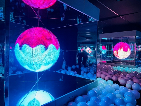‘4 미래를 향한 혁신적 시도(Power to Progress)’에서는 양쪽 벽면이 거울도 이뤄진 통로 너머로 공중에 떠있는 작품을 마주하게 되며, 조명의 역동성과 함께 서로 반사되어 무한한 빛 속에 있는 듯한 경험을 하게 된다.
