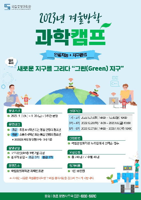 국립중앙과학관, 2023년 겨울방학(1월) 과학교실과 과학캠프 교육생 모집