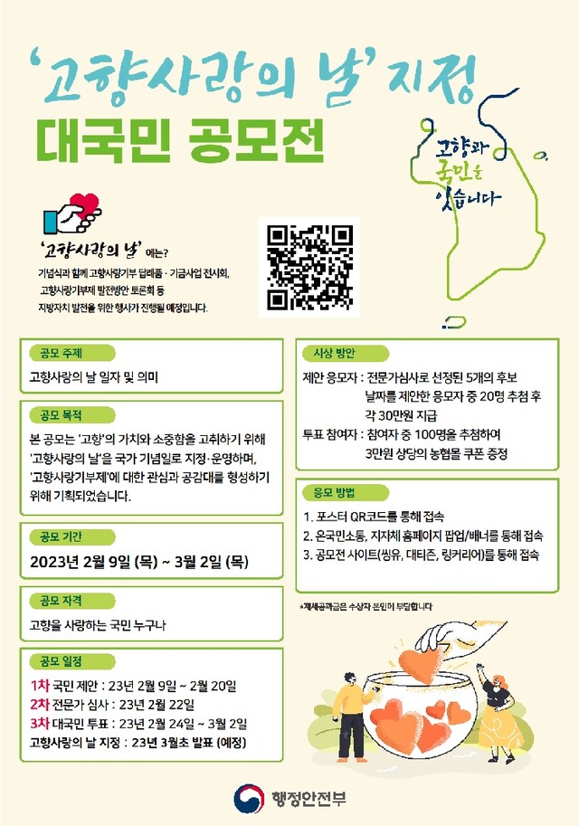 ![고향사랑의 날 지정 대국민 공모 포스터[이미지 행안부]](https://cdn.ikoreanspirit.com/news/photo/202302/71039_71652_2355.jpg)