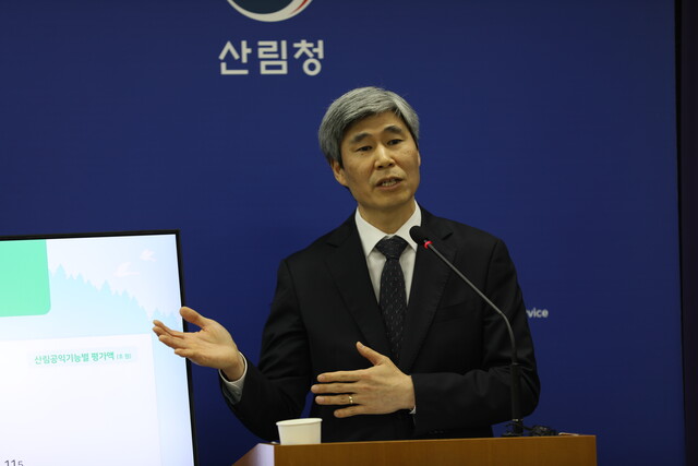 배재수 산림청 국립산림과학원장은 3월 29일 정부대전청사 기자실에서 2022년 기준 산림공익기능 평가 결과를 발표하며 이같이 밝혔다.